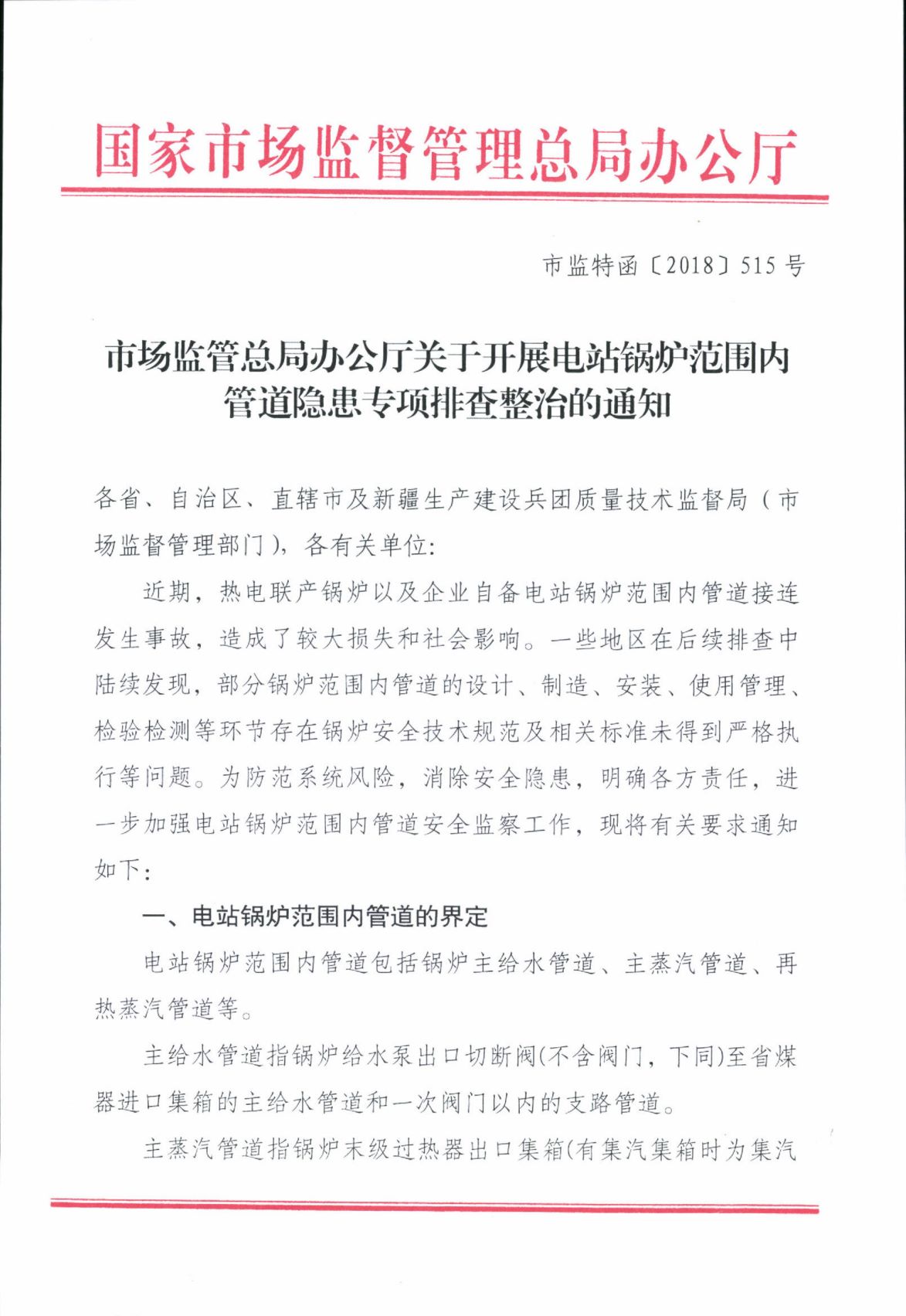 市場監(jiān)管總局辦公廳關(guān)于開展電站鍋爐范圍內(nèi)管道隱患專項排查整治